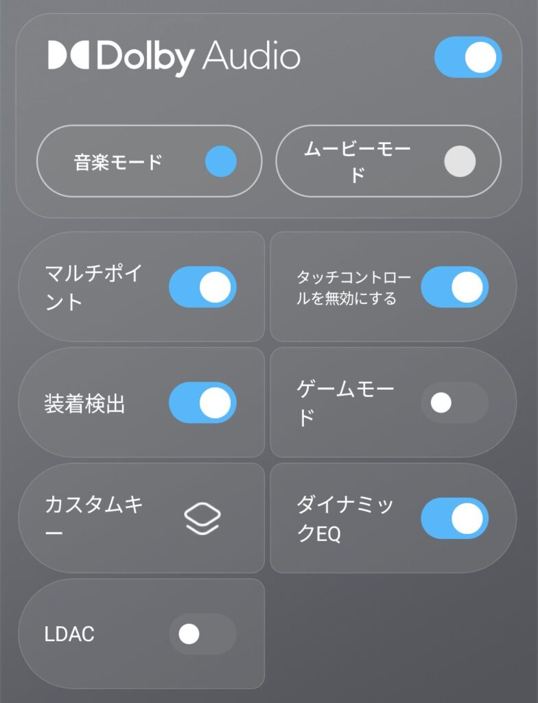 SOUNDPEATS Clip1がLDACに対応しているのは大きなメリットなのですが、一方でLDACとダイナミックEQやDolbyAudioを同時に利用できないのはデメリットです。